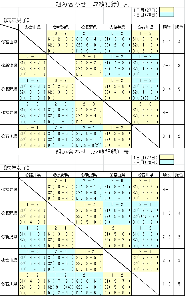 福井県出場選手 監督 秋山勝之 男子 菊池玄吾、ロンギ正幸 女子 林恵里奈、渡辺安美